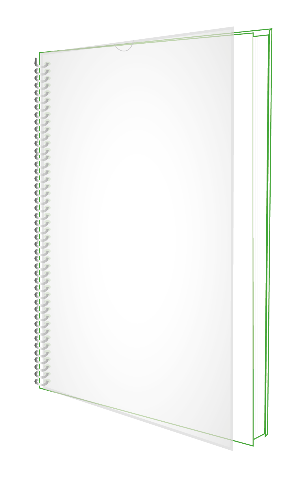 Neben der klassischen Klebebindung bieten wir ebenfalls eine Plastikspiralbindung inklusive Deck- und Abschlussfolie an. Falls Sie sich eine Klarsichthülle oder Dreiecktasche zum Aufbewahren von Dokumenten wünschen, integrieren wir diese gerne in Ihr Heft.